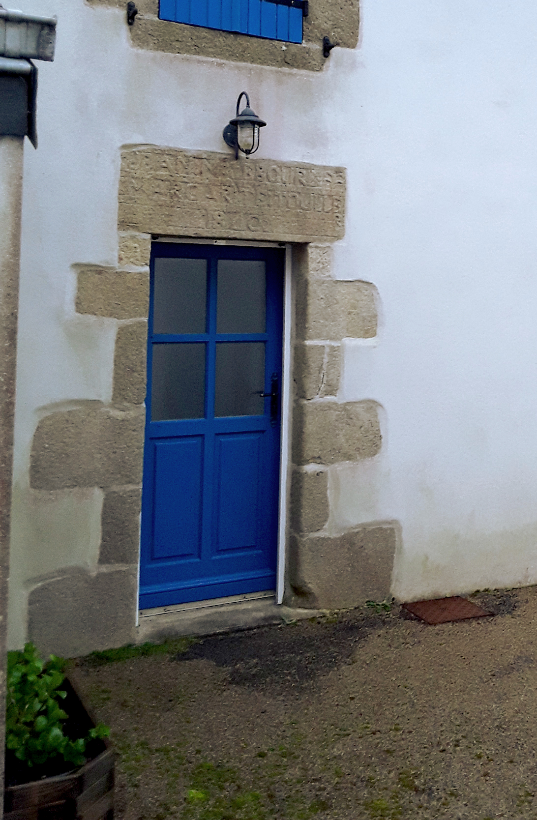 Pen traon ger, maison 2, détail du linteau de la porte d'entrée. (2018)Immatriculation