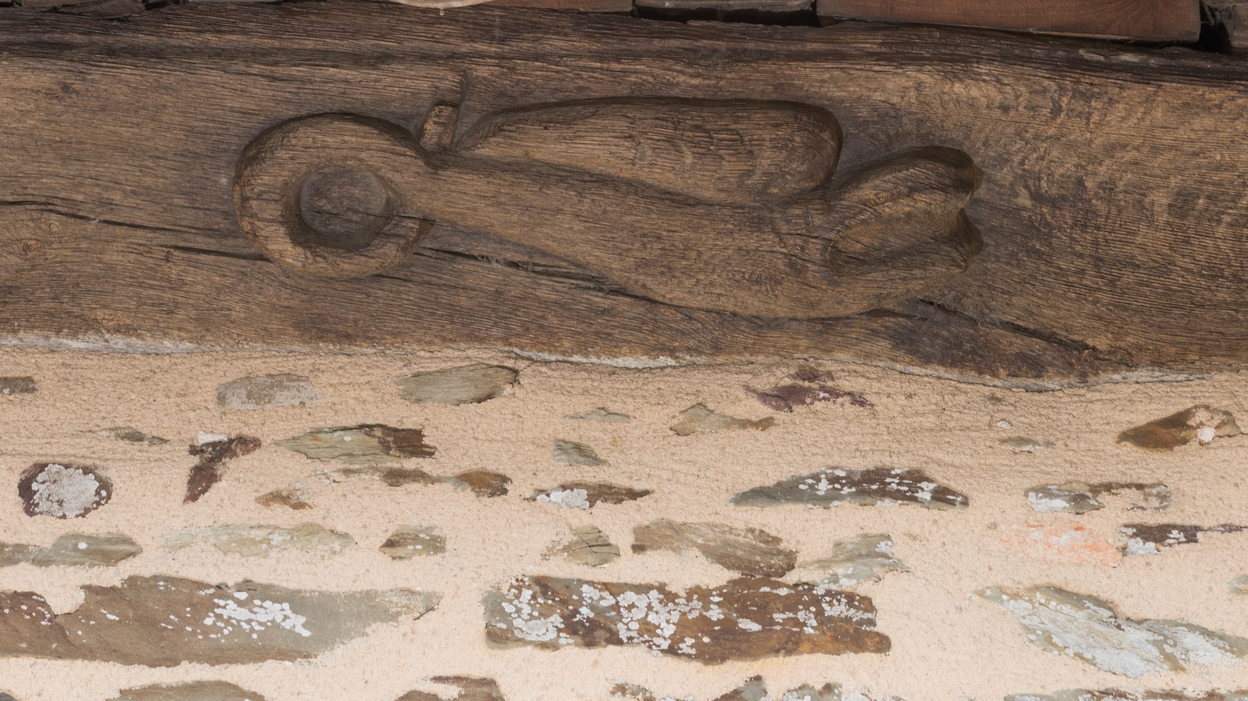 Sablière sculptée extérieur de la façade sud (détails)Immatriculation