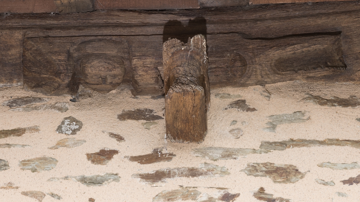 Sablière sculptée de la façade sud (détails)Immatriculation