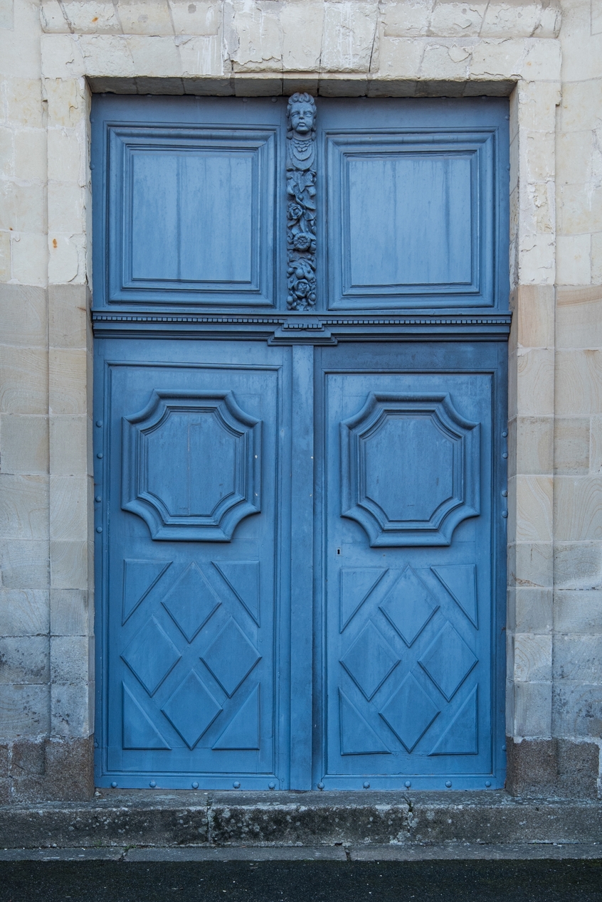 La chapelle, détail : la porte de l'entrée.Immatriculation