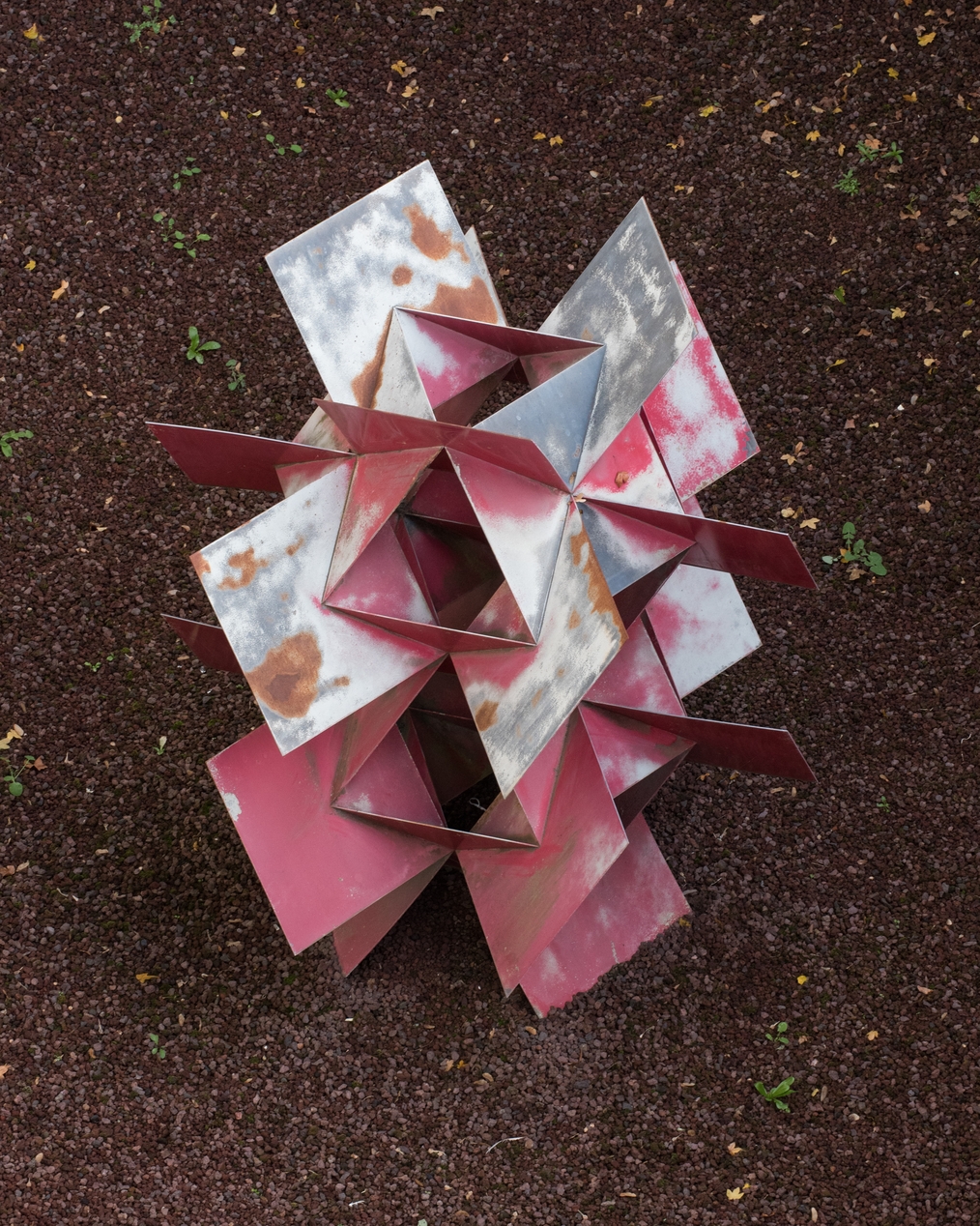 Sculpture métallique de Francisco Sobrino (1932-2014), dans le patio situé entre les bâtiments B, C et E. Vue de dessus.Immatriculation