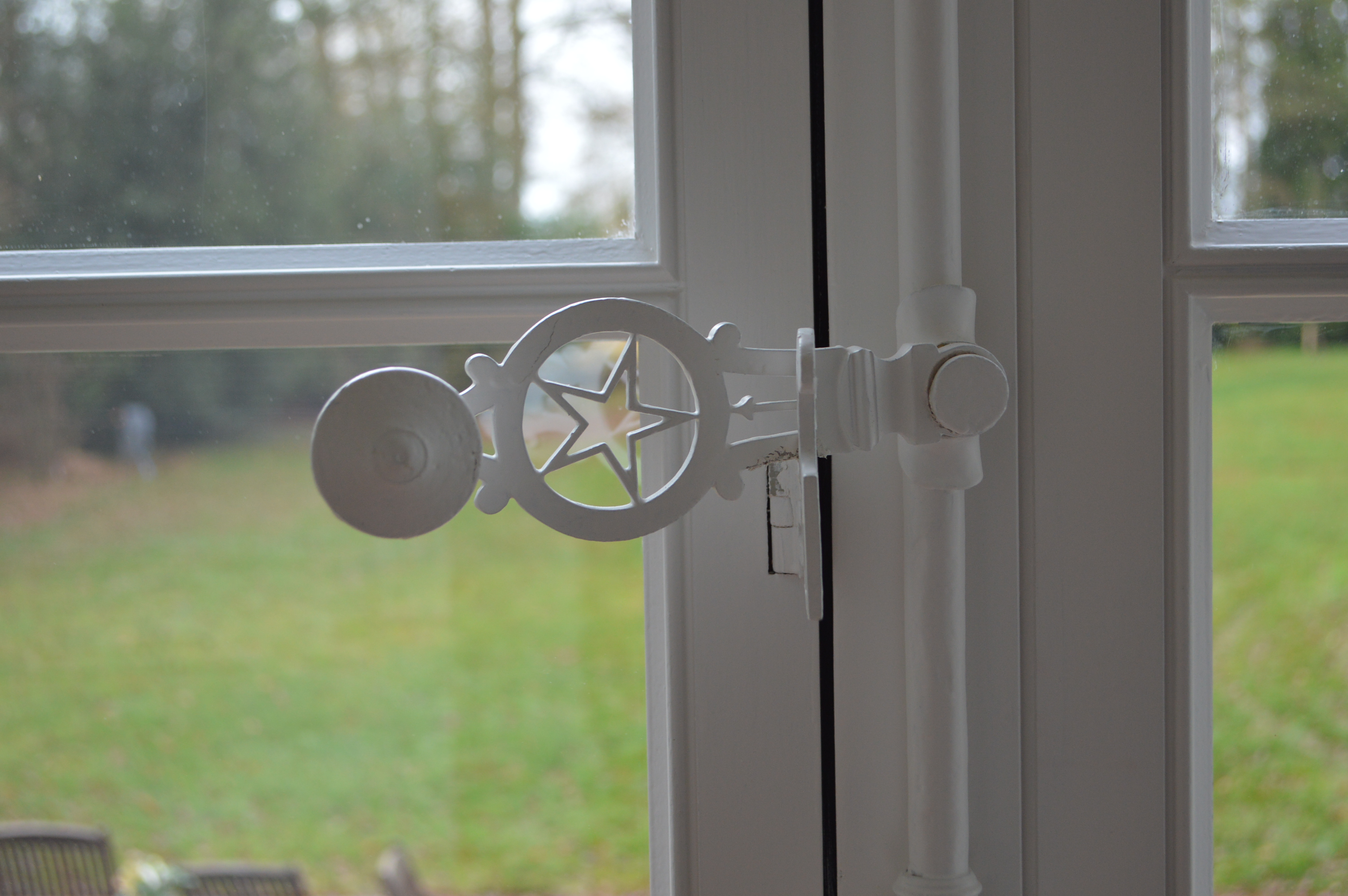 Porte-fenêtre : détail d'une crémone de ferronnerieImmatriculation