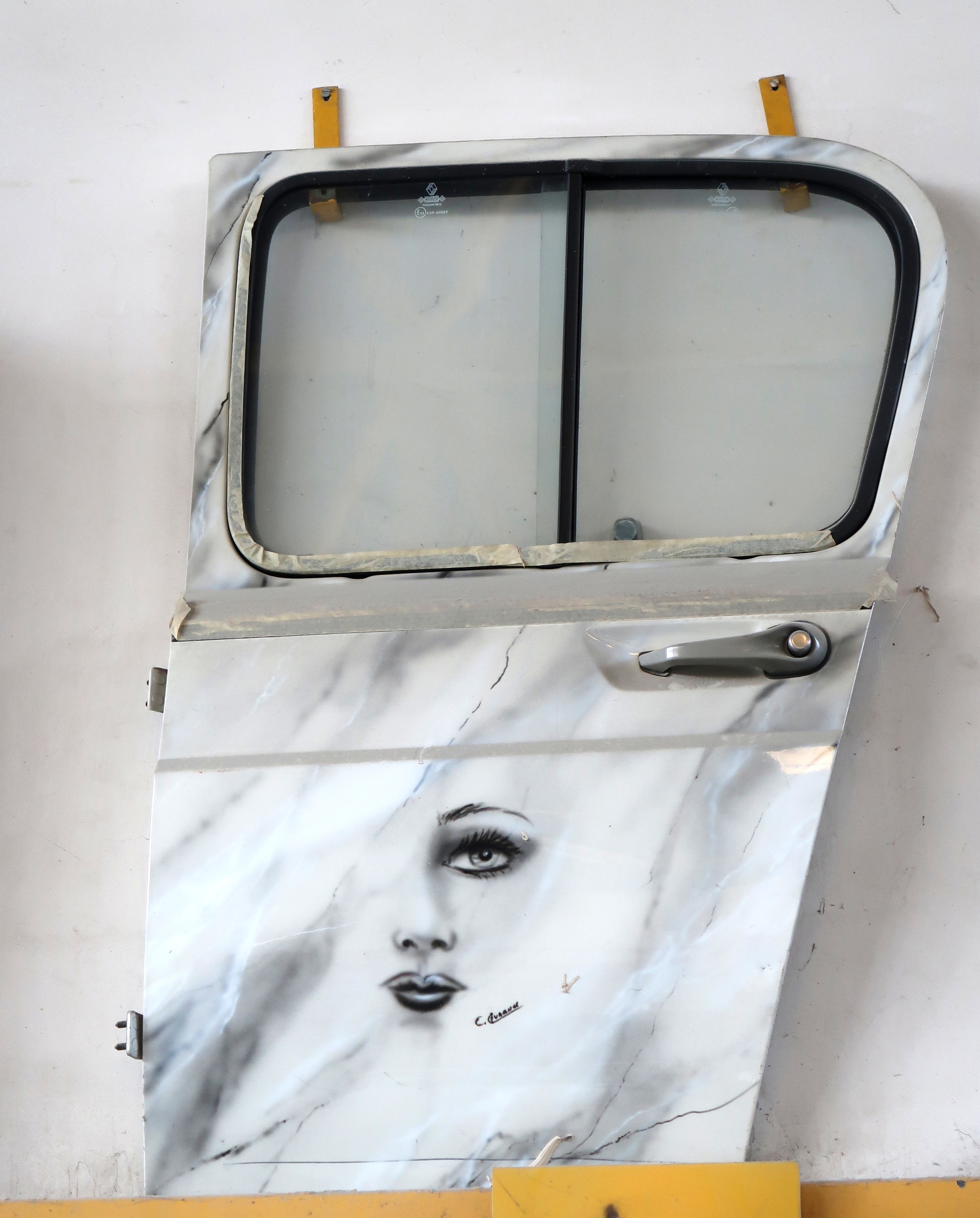 Réalisation d'élève en CAP peinture sur carrosserie. Porte de 4 L.Immatriculation