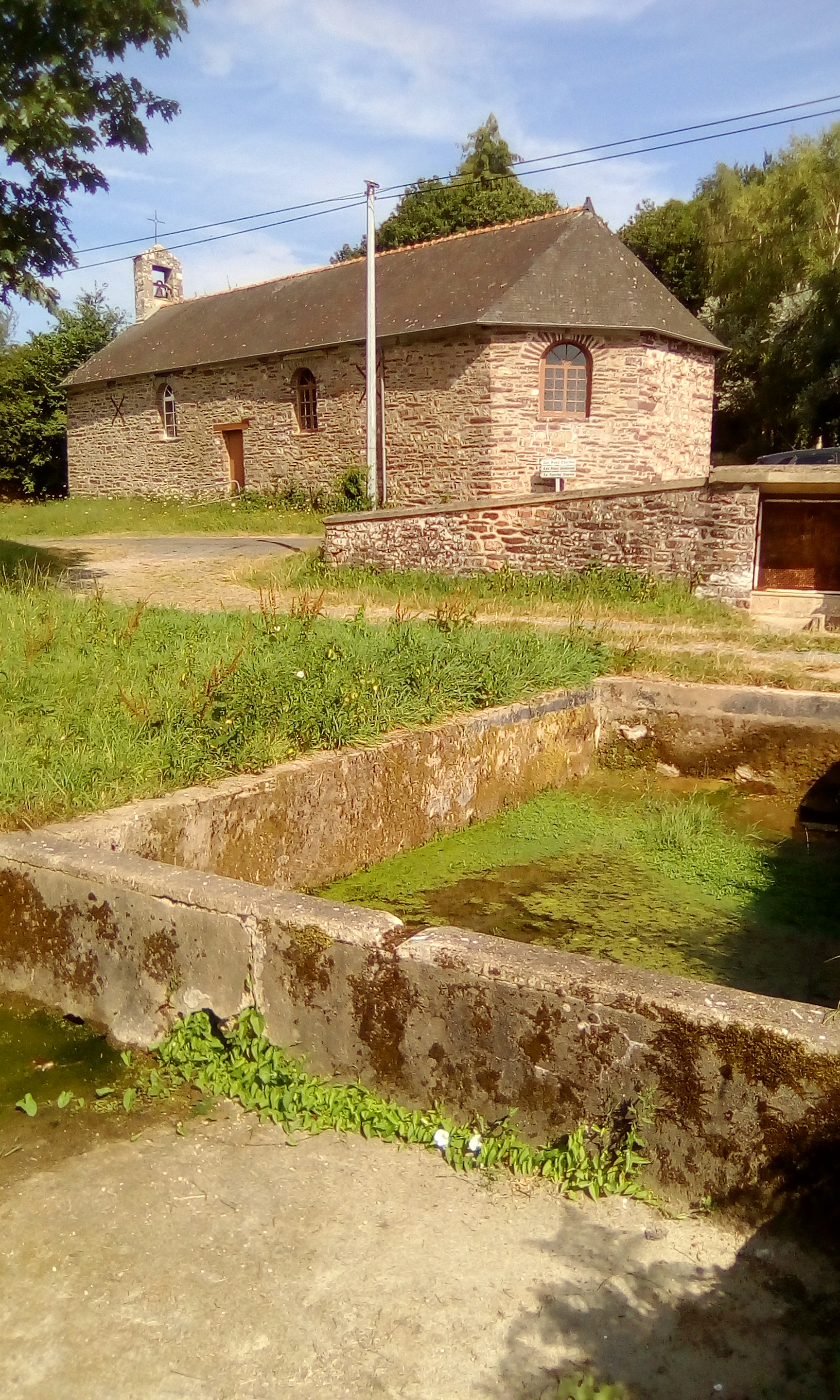 Vue de la chapelle prise du sud-est, au premier plan le lavoir et la fontaineImmatriculation