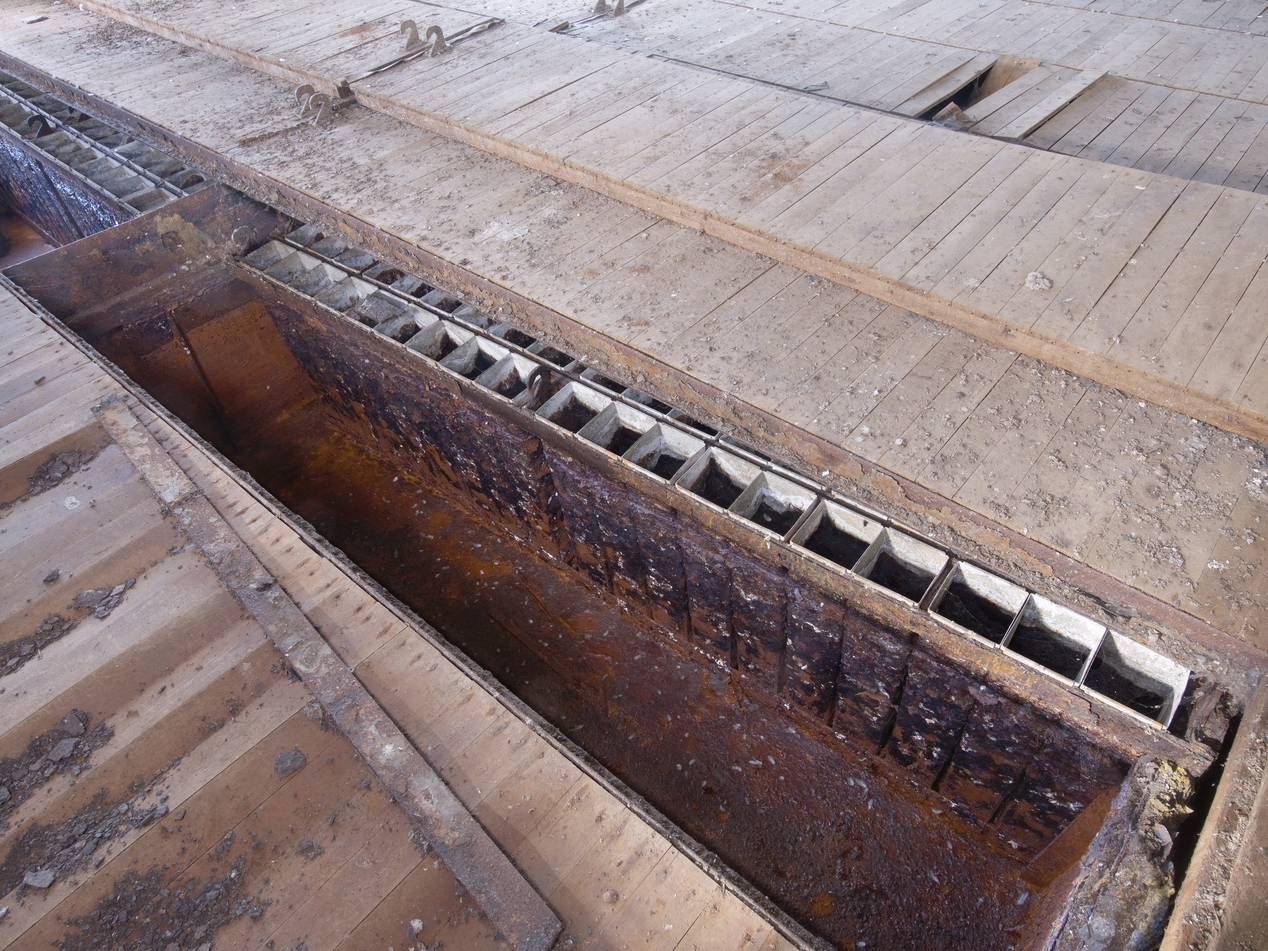 Frigorifique de Lorient : 4e étage, bacs à saumure où sont remplis les mouleaux.Immatriculation