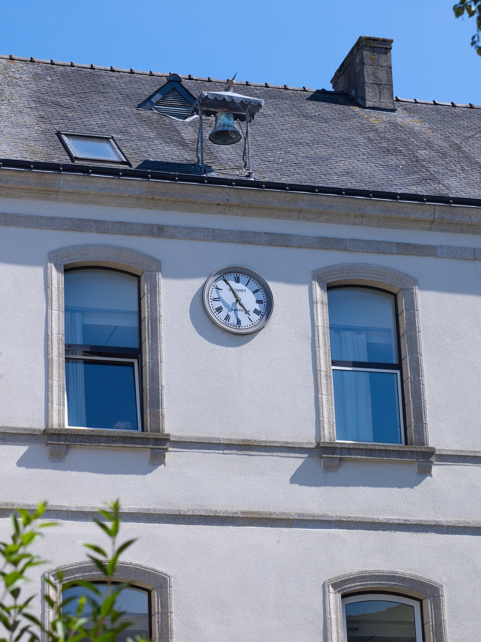 La cloche et l’horloge : détail de la façade du bâtiment C2 (externat et logements, Aimé Le Corre architecte, ca 1885-1891), vu depuis la cour d'honneur.Immatriculation