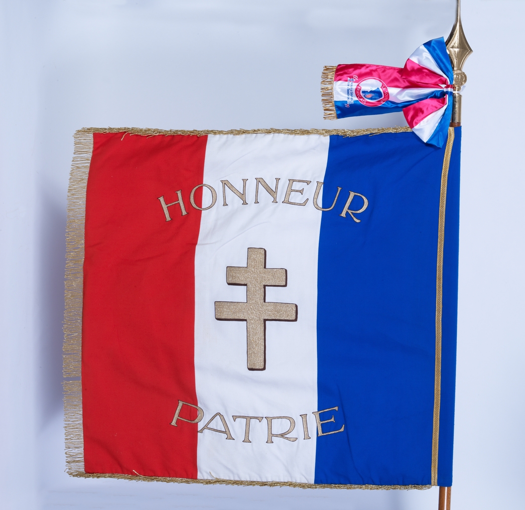 Drapeau des FFI des anciens cantons de Pontivy et Cléguérec, prêté au lycée suite à l'obtention de plusieurs prix au concours national de la Résistance, en 2018.Immatriculation
