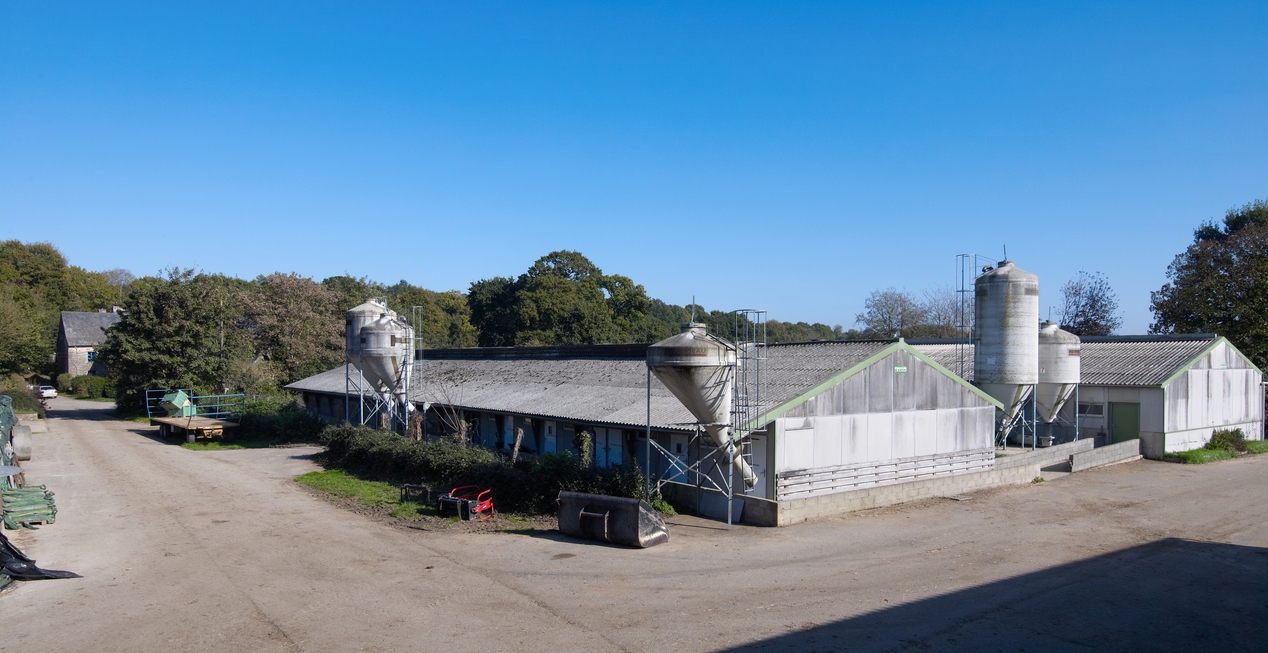 Vue d'ensemble de la porcherie, prise de l'ouest.Immatriculation