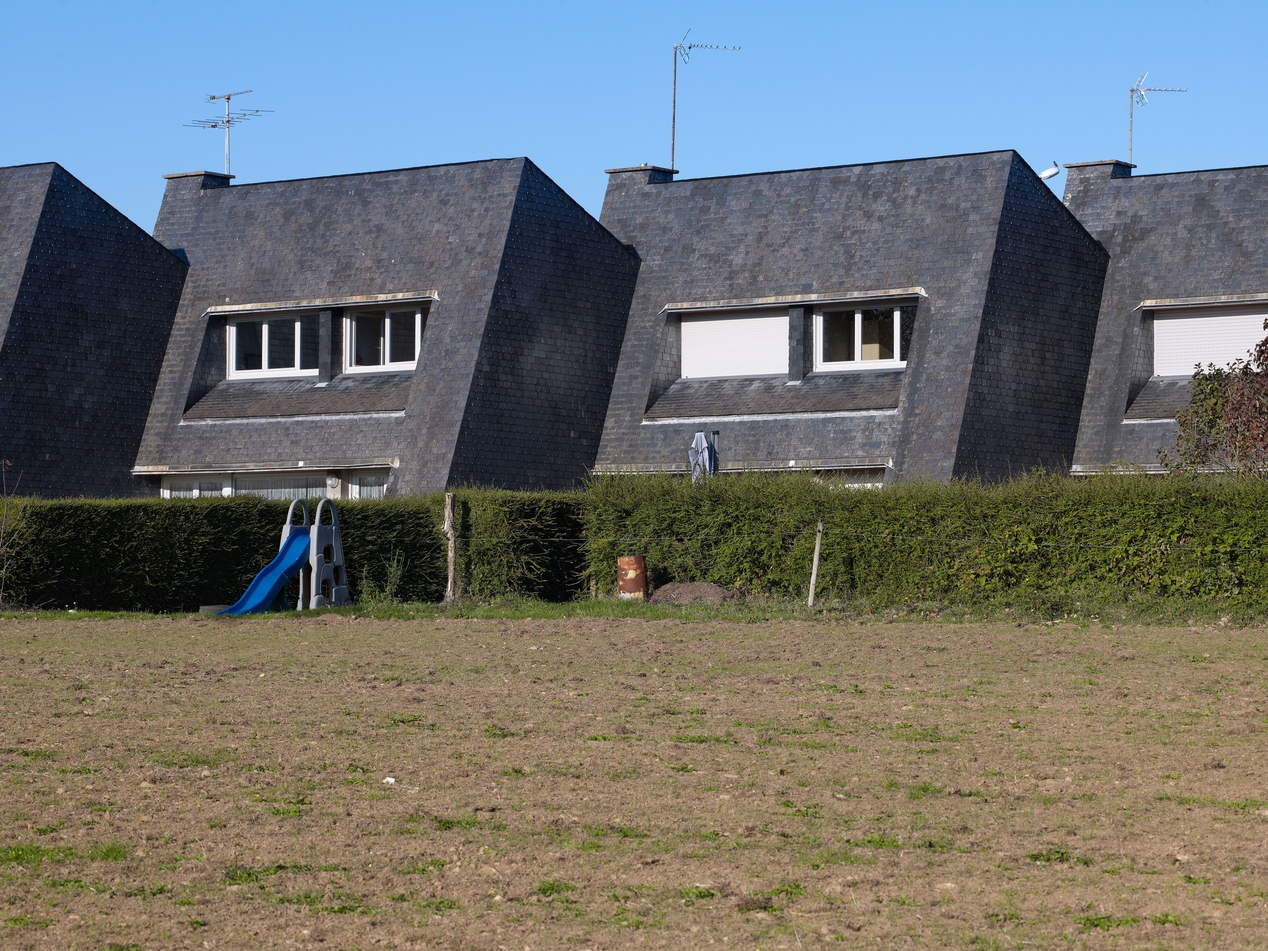 Vue de deux logements de fonction (Yves Guillou, architecte, 1966), façades sud-ouest.Immatriculation