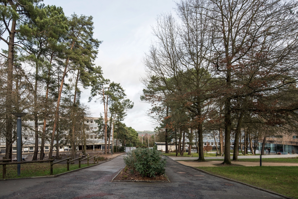 "Les Champs-Élysées" : l'axe de circulation central du lycée, vue prise de l'ouest-sud-ouest.Immatriculation