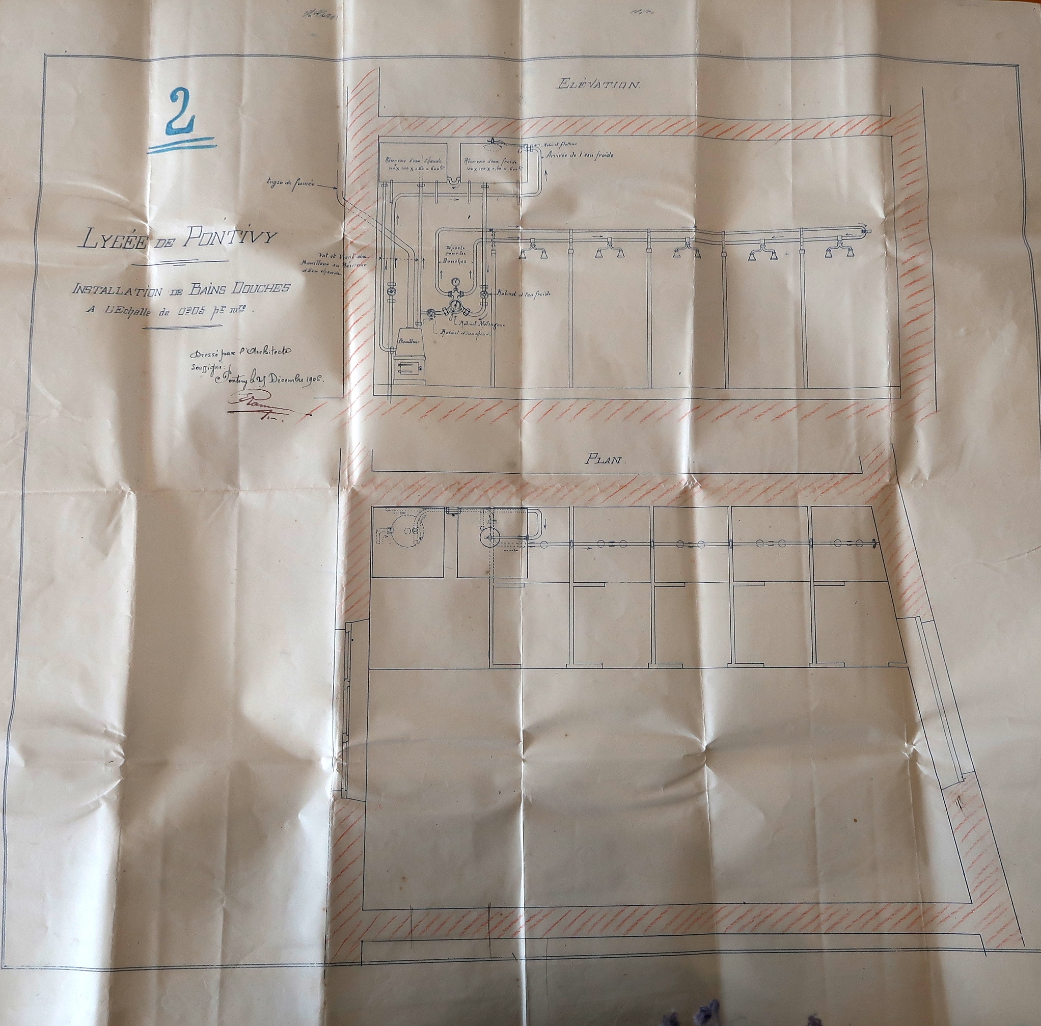 Projet de douches (décembre 1906). Ramonatxo architecte.Immatriculation