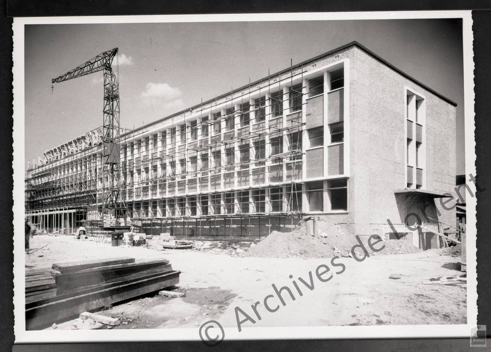 Construction du bâtiment scientifique (R. Ouvré, architecte). On remarque la construction du portique au dernier étage.Immatriculation