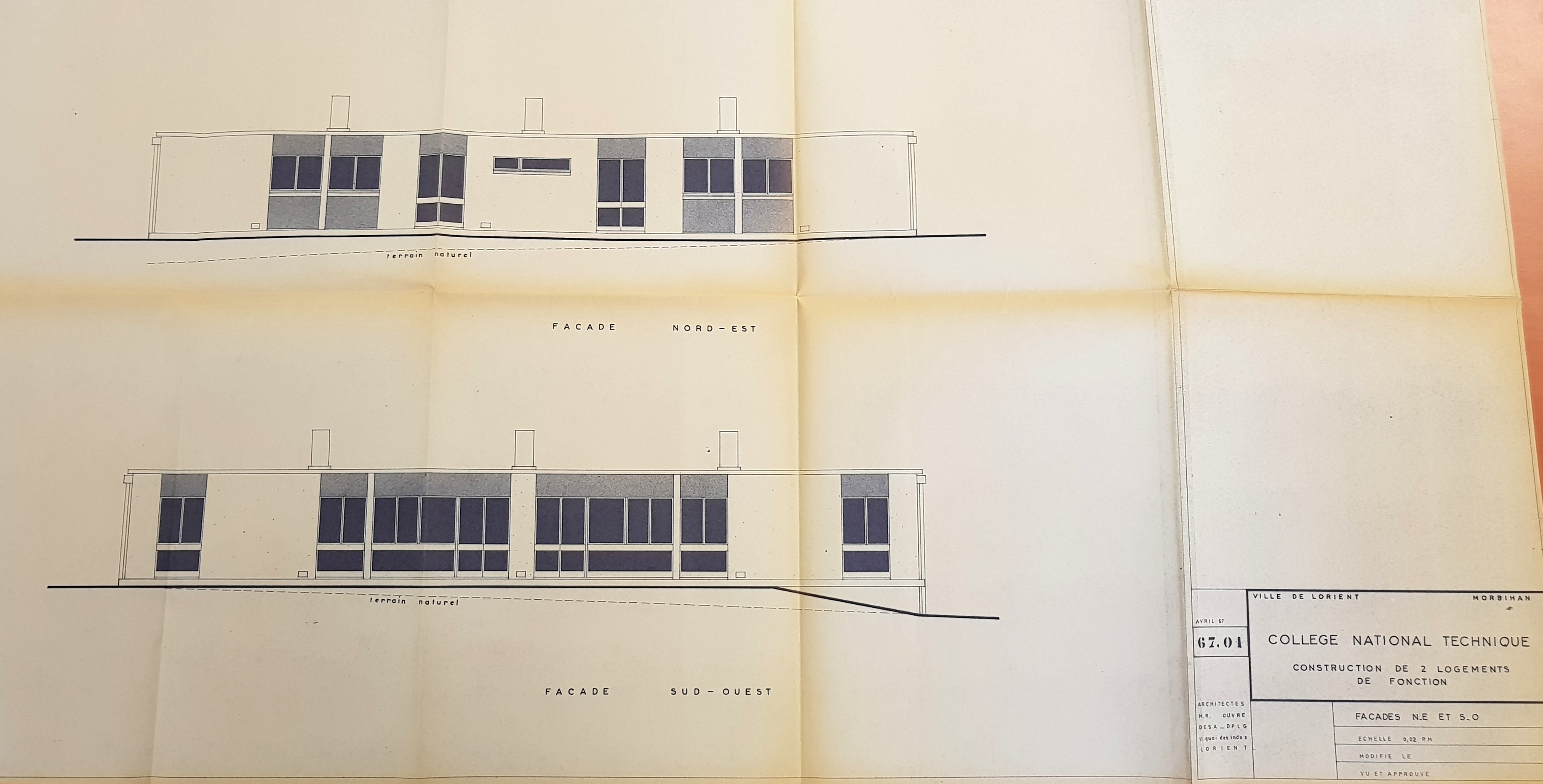 Élévations de deux logements de fonction, René Ouvré architecte, 1967 (AM_Lorient_1NC1385).Immatriculation