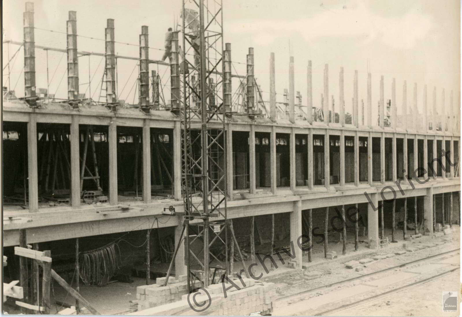 Construction d'un des bâtiments du futur lycée, bel exemple de construction industrialisée.Immatriculation