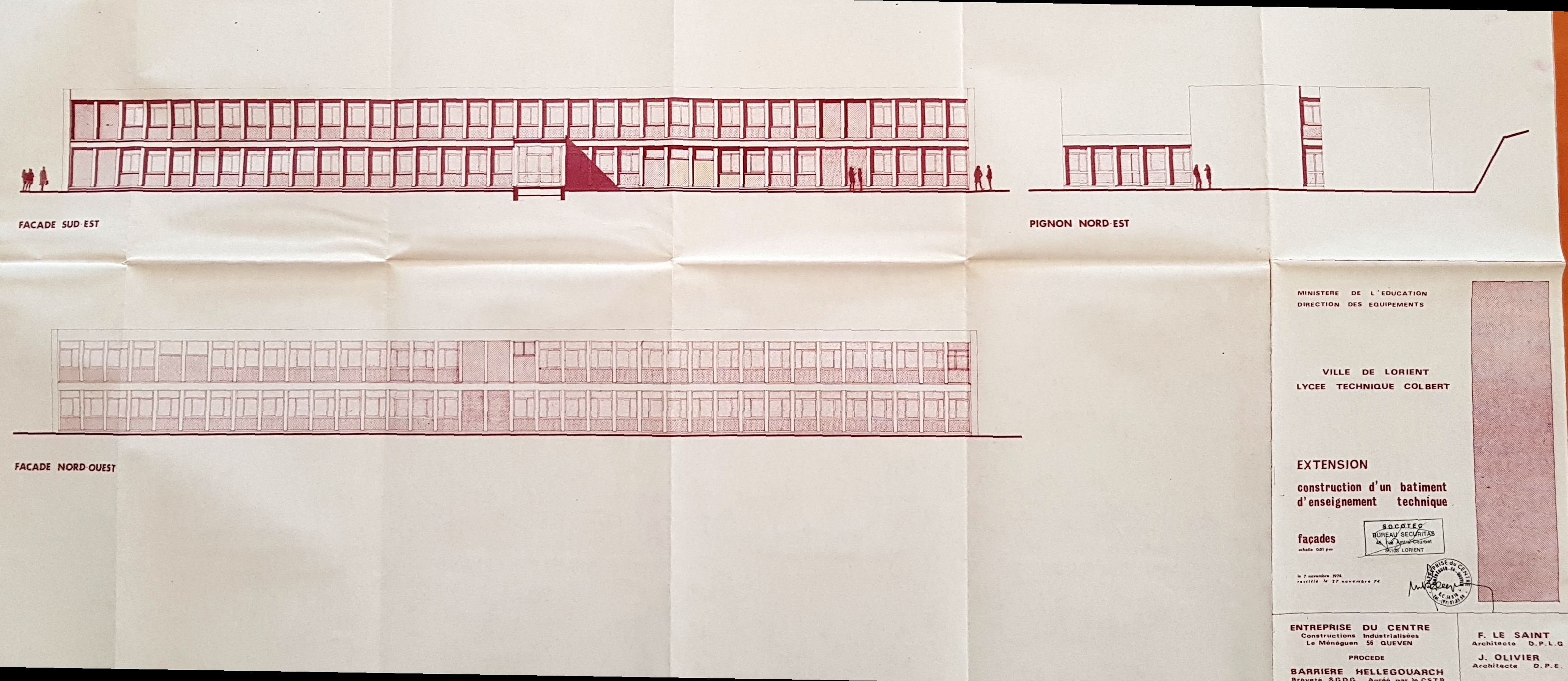 Construction d'un bâtiment d'enseignement technique : élévations et coupe (17/10/1974, rectifié le 29/10/1974)Immatriculation