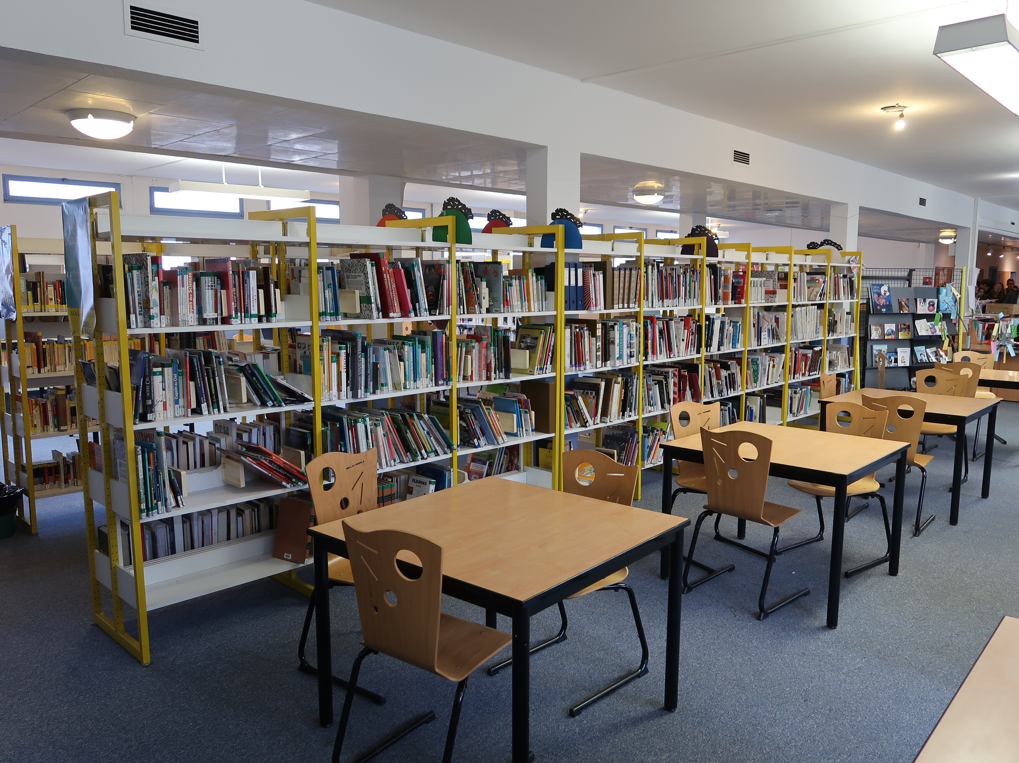 Le CDI, aménagé dans l'ancien internat de garçons. La structure du couloir central est apparente.Immatriculation