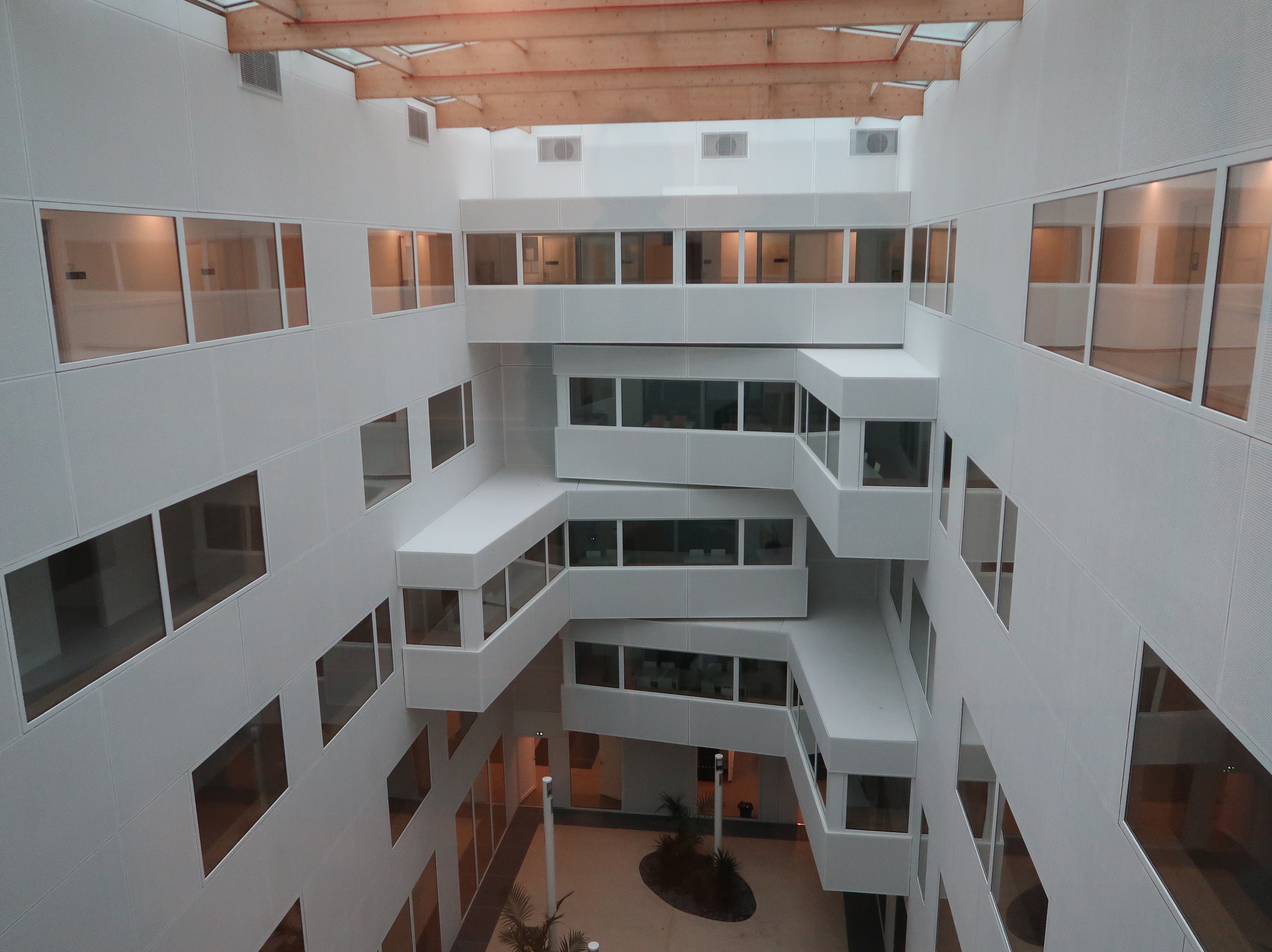 Nouvel internat, détail sur les salles d'étude suspendues au dessus du péristyle. De part et d'autre, les baies des couloirs.Immatriculation