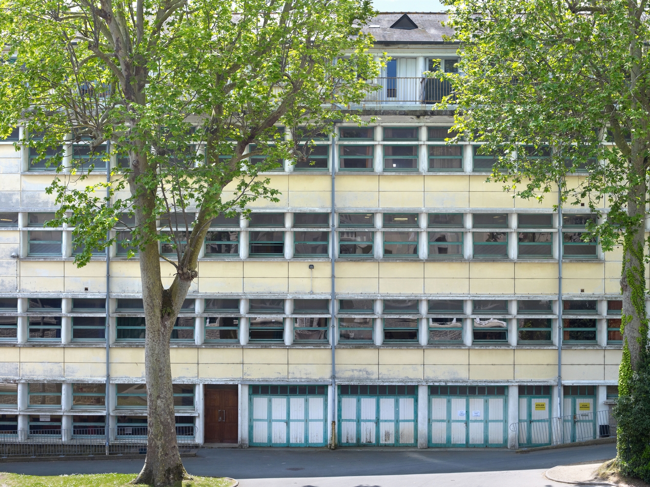 Bâtiment D, internat de 1961 (L. Arretche, Jean et Yann Fauny, architectes), également externat aujourd'hui : détail de la façade nord-est.Immatriculation