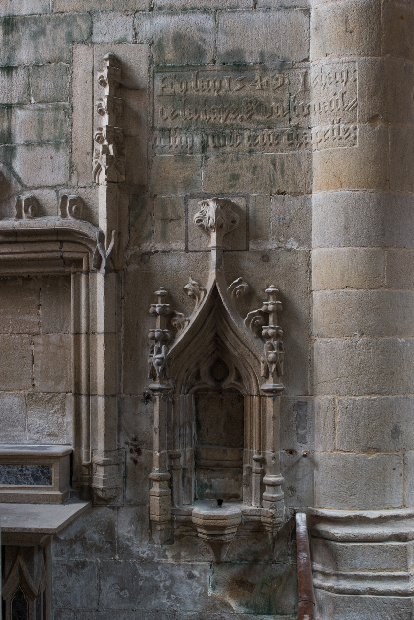 Déambulatoire du choeur, chapelle de la Haye, crédence liturgique et inscriptionImmatriculation