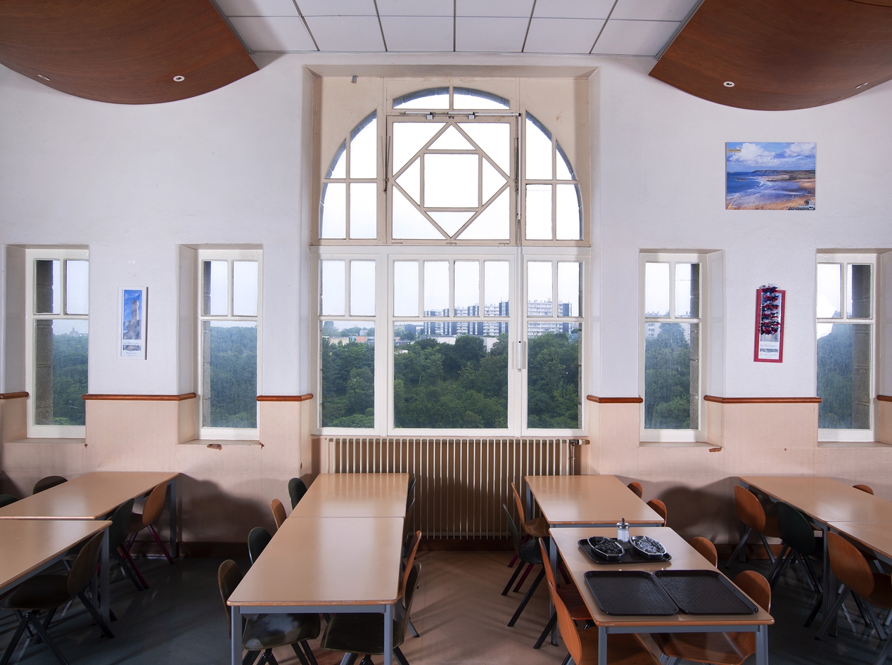Baies du réfectoire et vue sur la vallée du Gouédic.Immatriculation