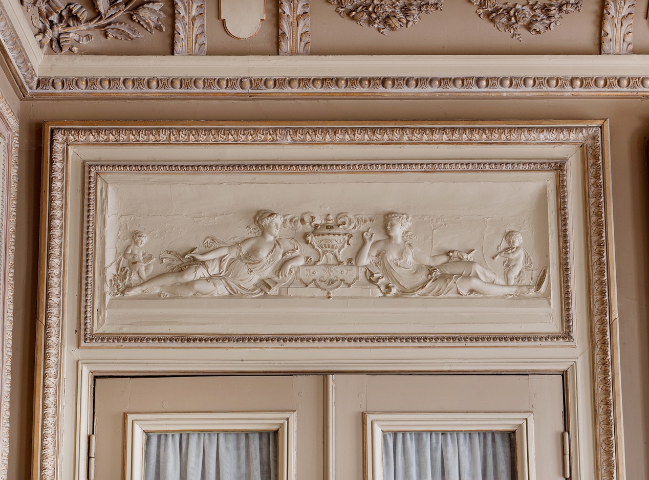 Salon d'honneur de la Villa Baratoux (actuellement salle du conseil d'administration du lycée), détail de la décoration. Porte et panneau sculpté.Immatriculation