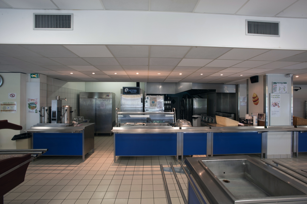 Self-service. A l'arrière plan, les cuisines.Immatriculation