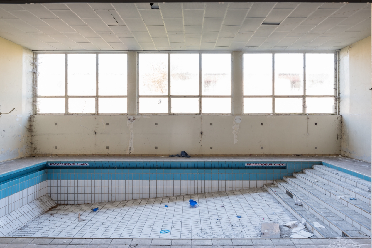 Vue d'ensemble du petit bassin (0,7 à 1,40 m de profondeur). Jean de Jaegher et François Roussseau, architectes, 1968.Immatriculation