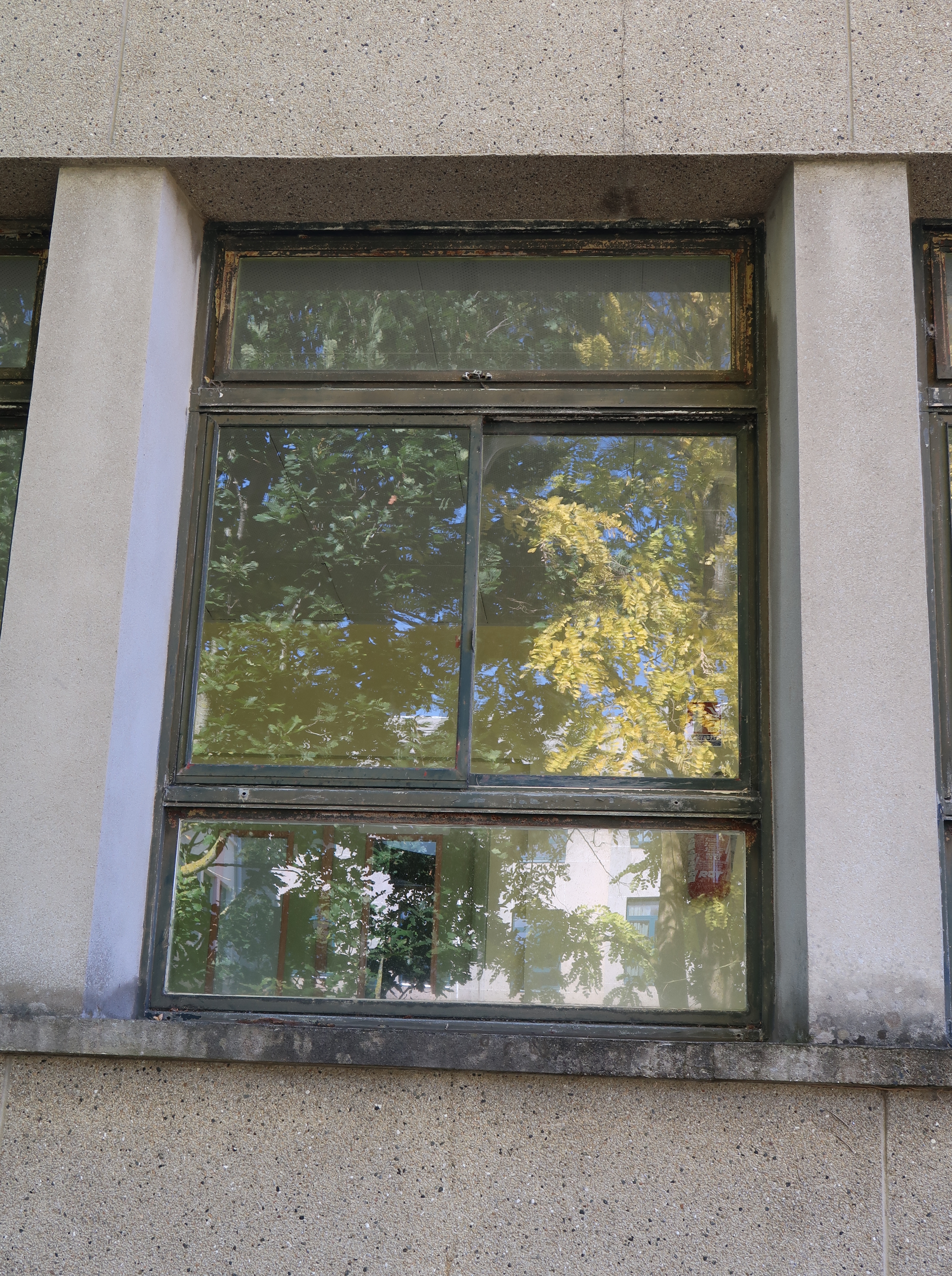 Une fenêtre d'origine, bâtiment D : menuiserie métallique.Immatriculation