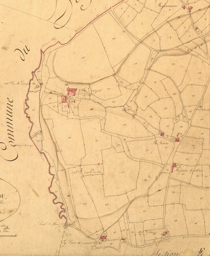 Extrait du cadastre ancien de 1829, section E feuille 1. Manoir de Kerdeozer.Immatriculation