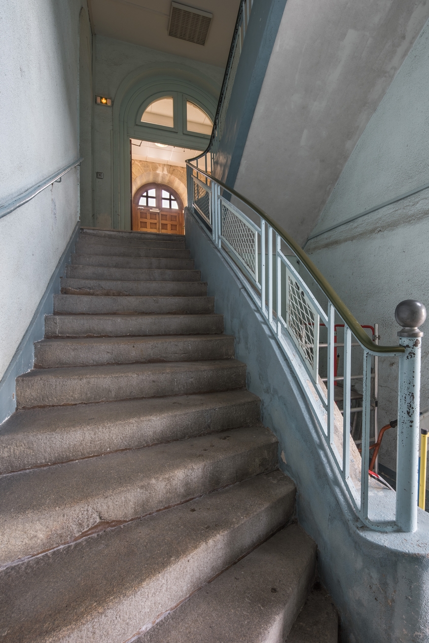Cage d'escalier en partie réhabilitée vers 1950-1960, dans l'ancien séminaire.Immatriculation