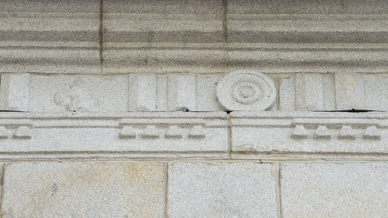Détail : façade de la chapelle du couvent des Bénédictines (1663).Immatriculation