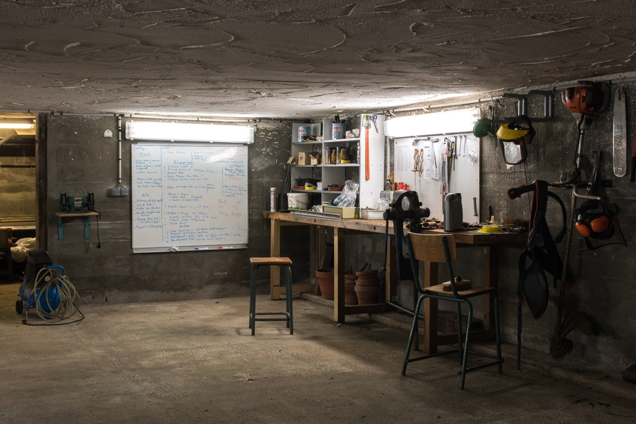Atelier des agents de maintenance et d'entretien, aménagé au sous-sol.Immatriculation
