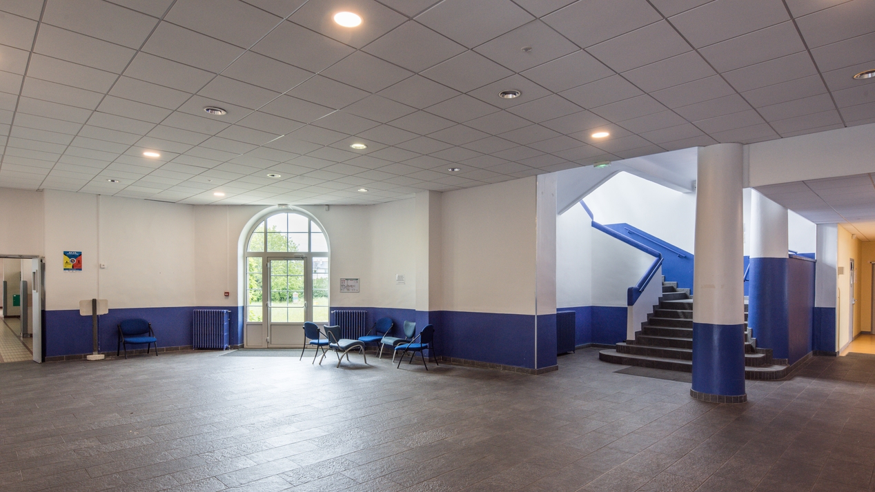 Ancien hall principal, situé à la croisée des trois ailes. L'entrée donnait sur le jardin d'honneur.Immatriculation