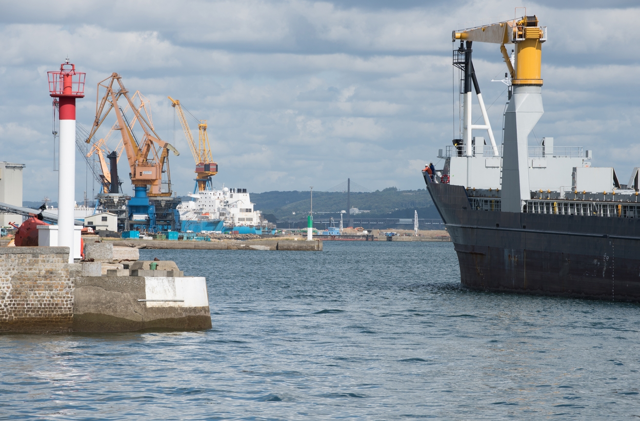 Chenal du port de Brest, passe Ouest : Grues du quai minéralier et des quais de réparation (2019, OPP port de Brest)Immatriculation