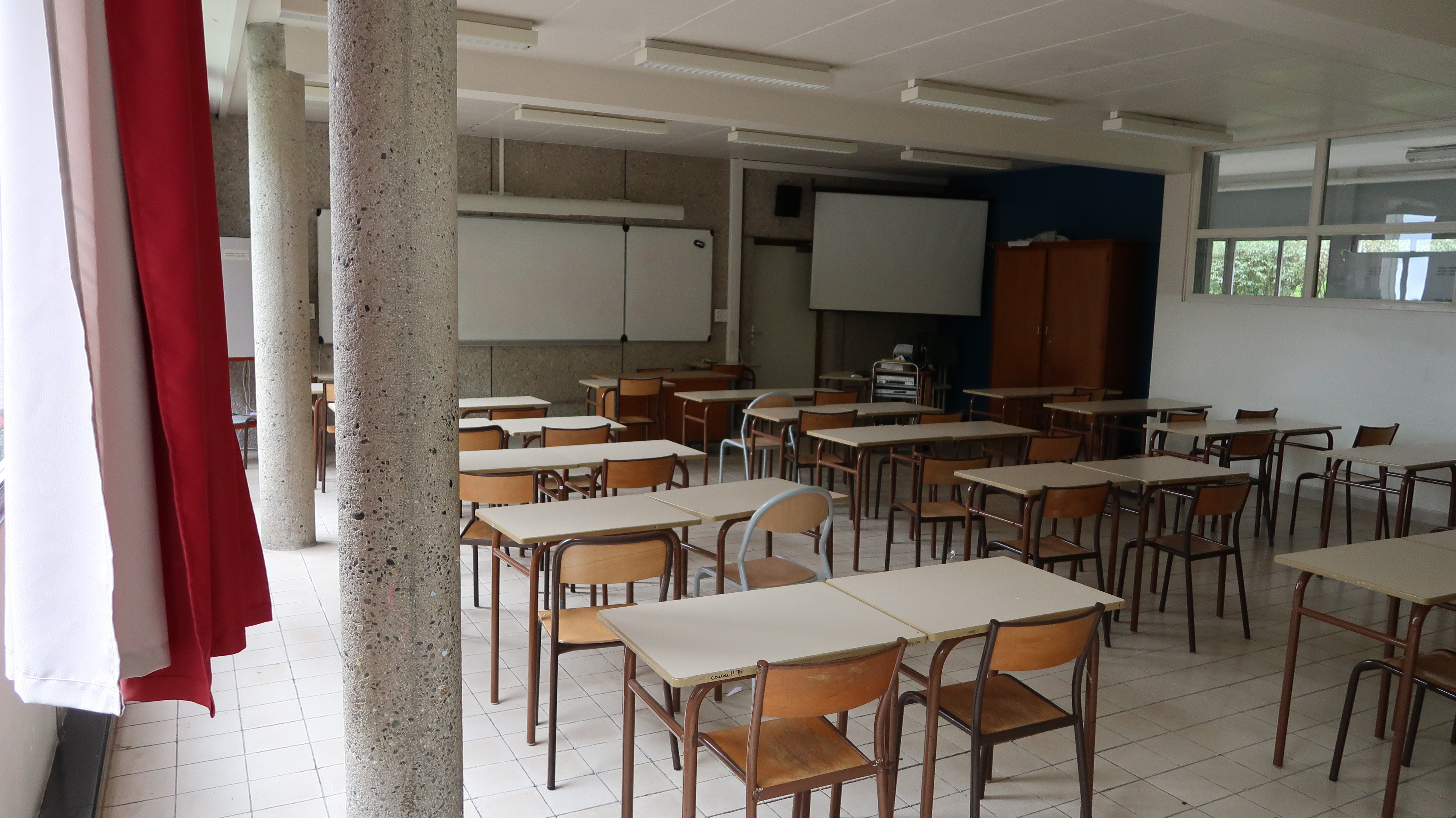 Ancienne salle d'étude, devenu salle de classe. R. Lopez architecte, 1958. Atypique pour l'époque, la structure porteuse est en retrait de la façade.Immatriculation