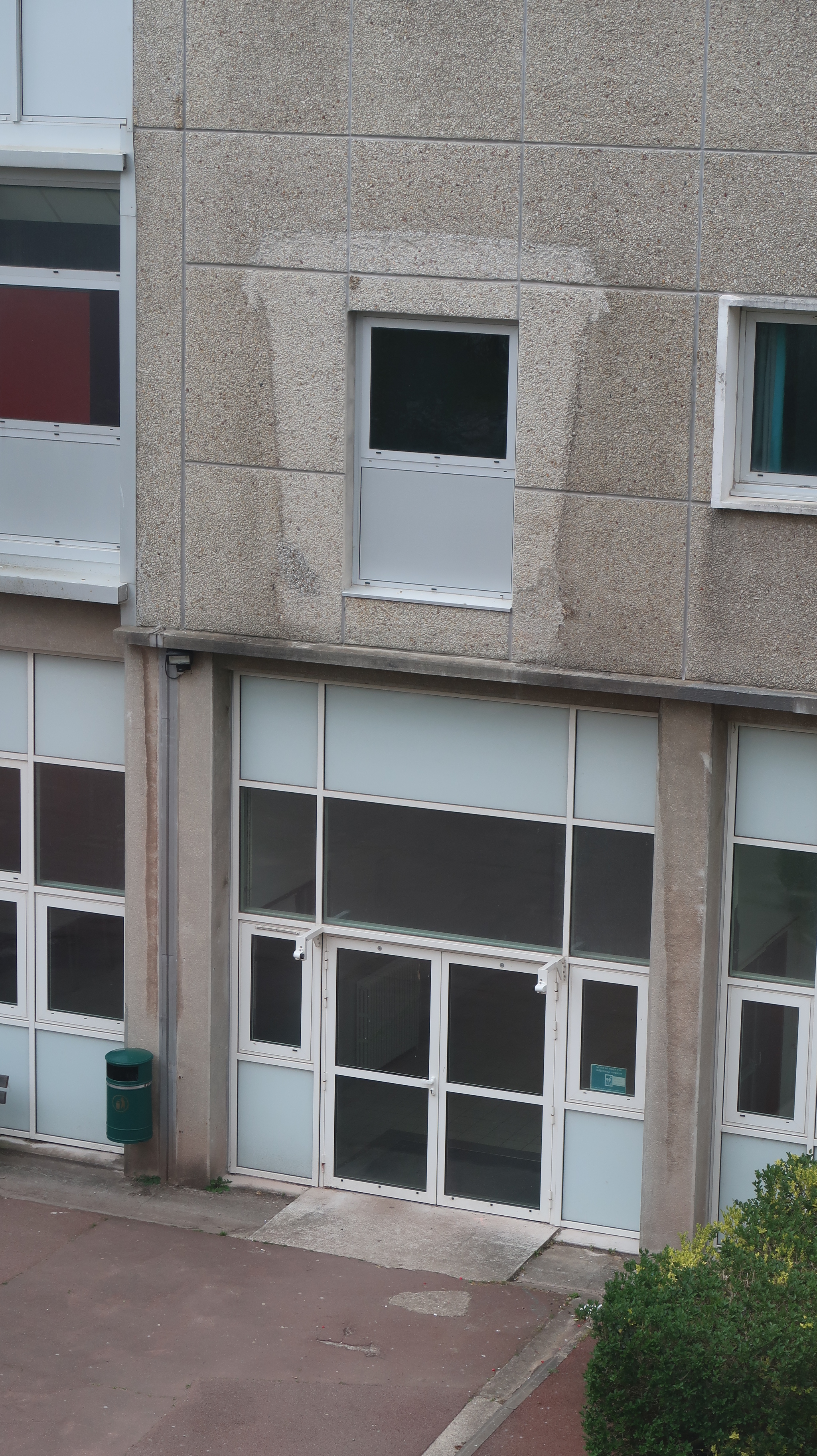 Trace de l’arrimage de l'ancienne passerelle entre l'internat B et le restaurant scolaire originel (bâtiment D). Le conseil général des bâtiments de France avait demandé à l'architecte R. Lopez, de l'ajouter à son programme.Immatriculation