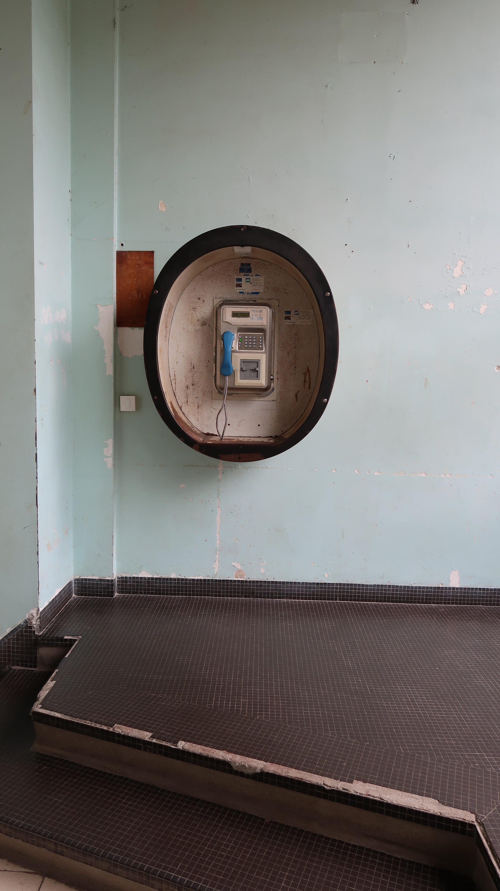 Une cabine téléphonique à cartes, dans un foyer de l'internat D : "le téléphone portable de l'époque...".Immatriculation