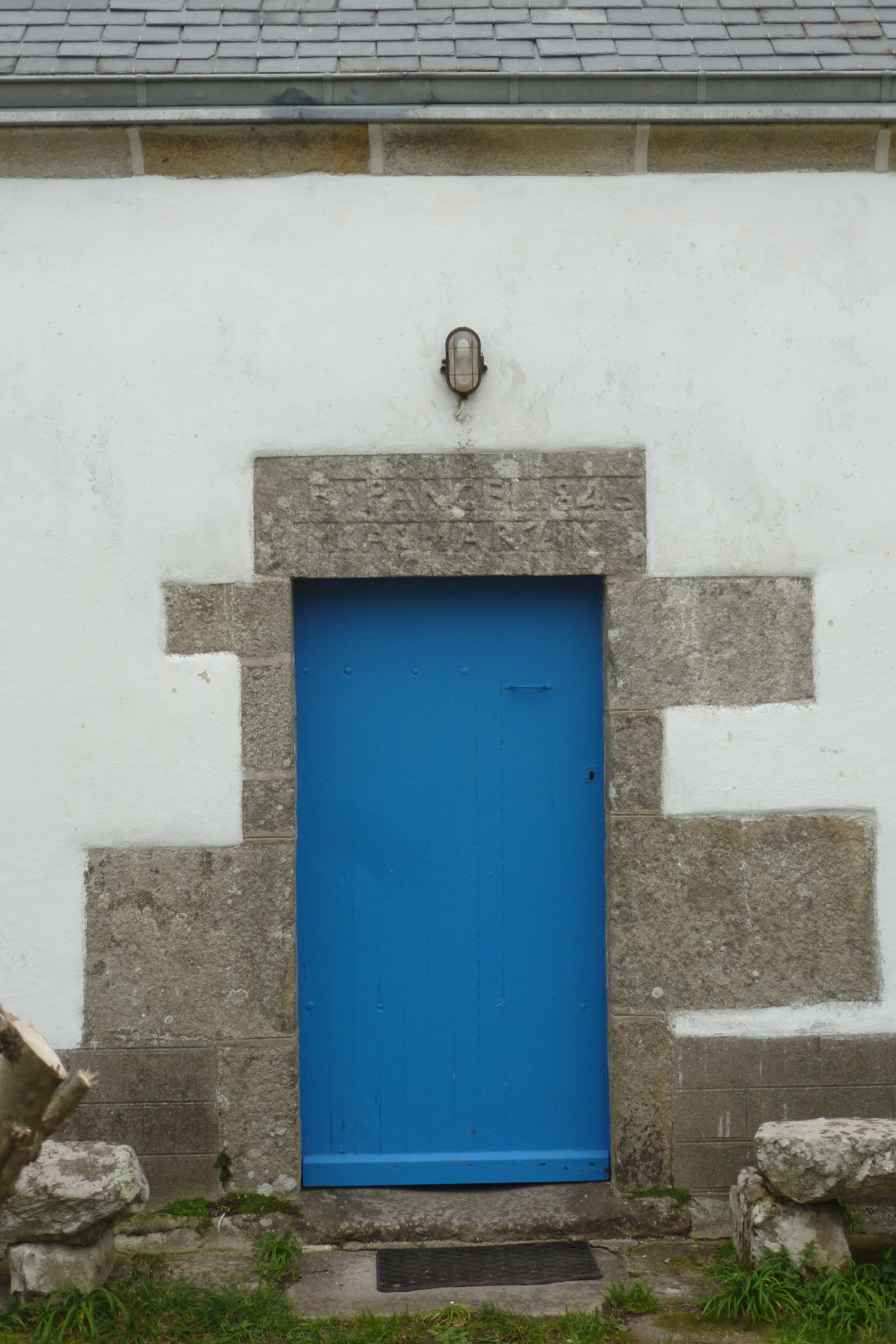 Maison 8, logis daté 1843, détail de la porte d'entrée et inscription : "F:PANCEL M:A:MARZIN"Immatriculation