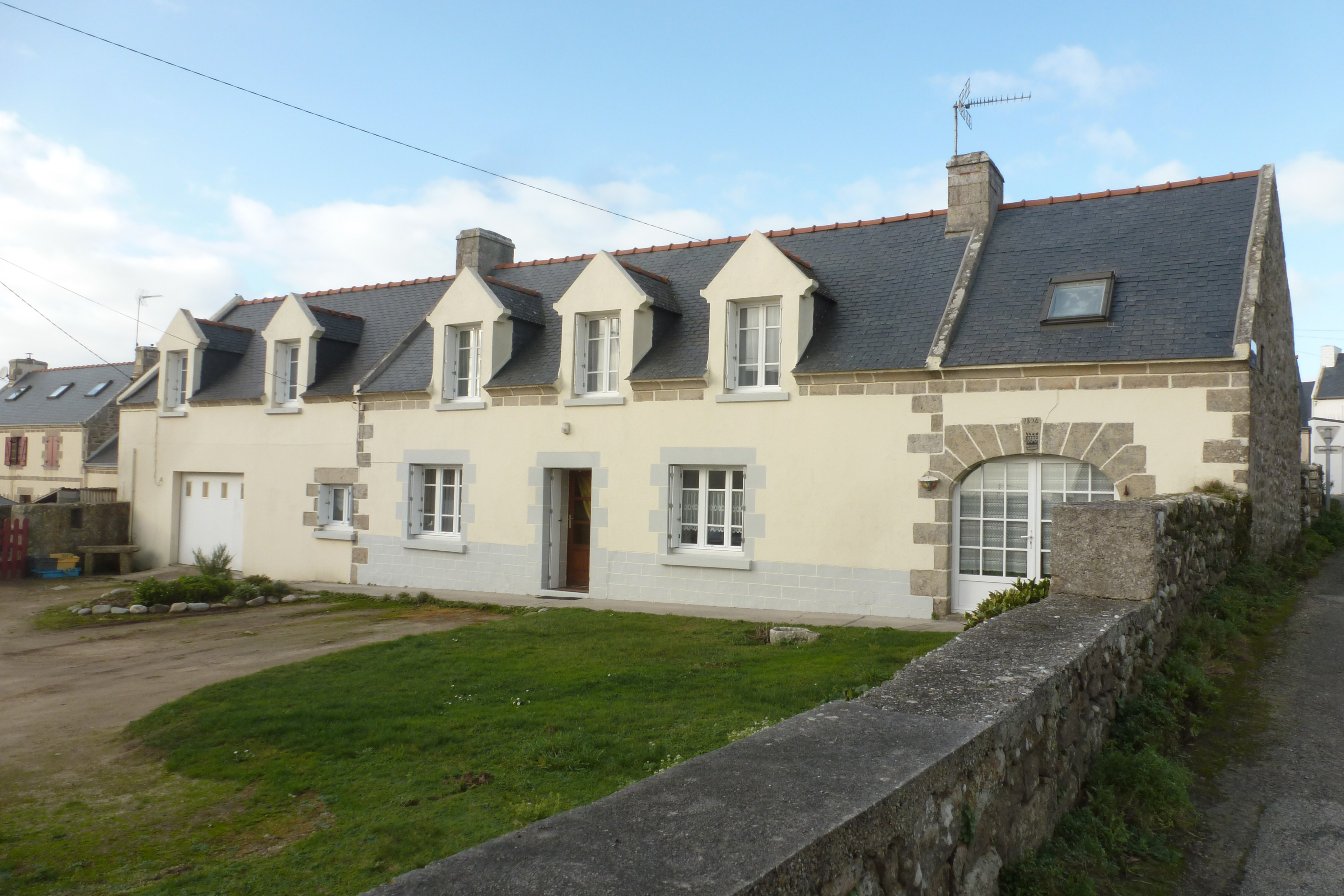 Maison 12, élévation antérieure remaniée de l'alignement principal : logis, crèche et grange datée 1894.Immatriculation