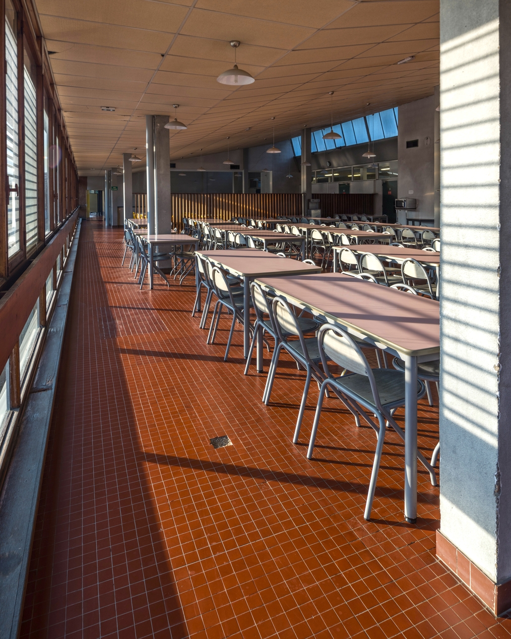 Réfectoire, rez-de-chaussée haut : salle de restaurant, vue prise le long de la façade sud.Immatriculation