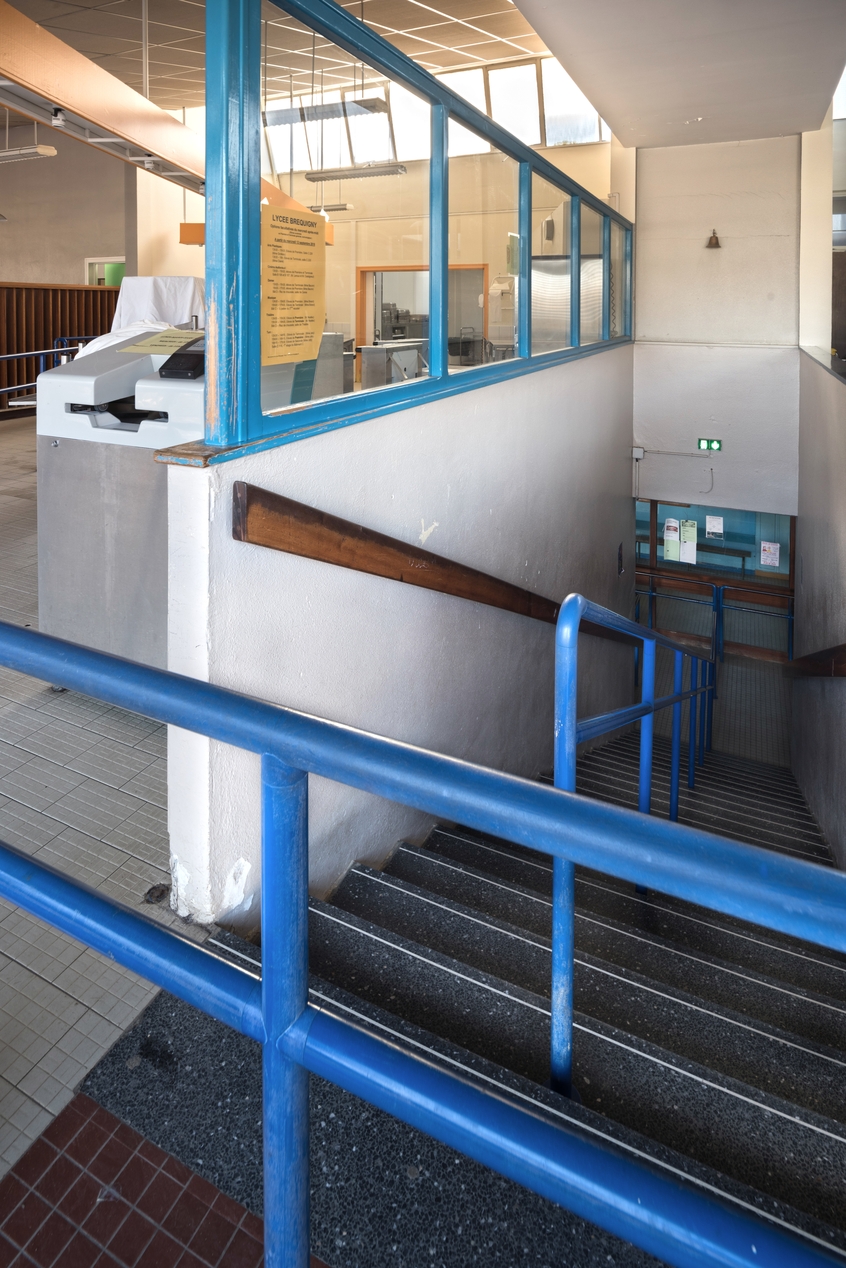 Réfectoire : un des escaliers d'accès à une ligne de self serviceImmatriculation