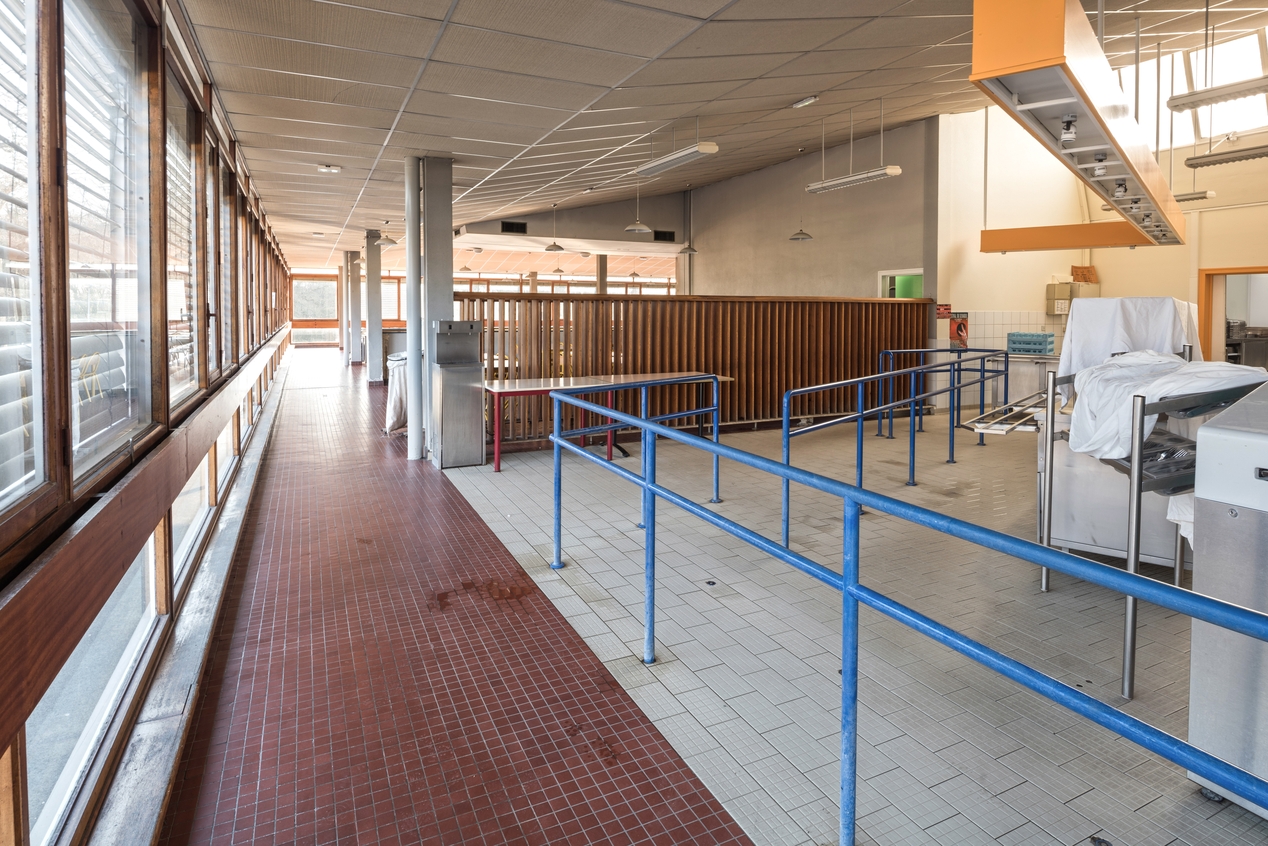 Réfectoire, vue intérieure du rez-de-chaussée haut, le long de la façade est. A droite, un des selfs. Au fond prennent place des salles de restaurant.Immatriculation