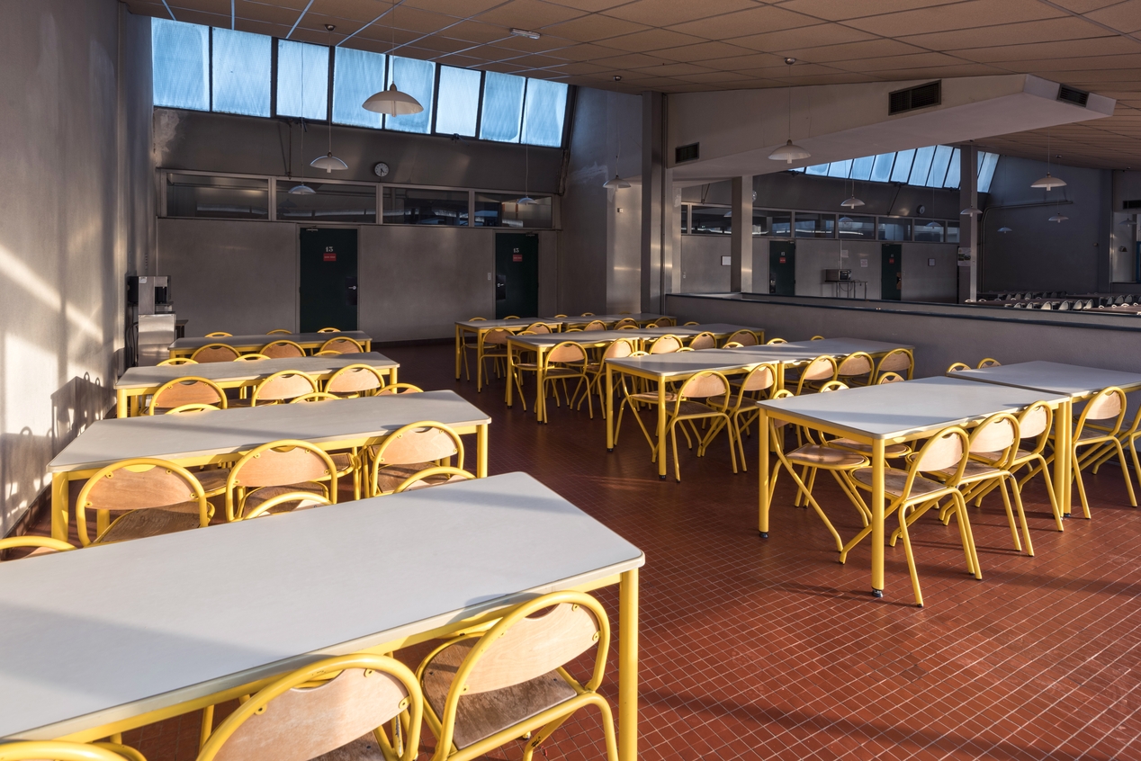 Réfectoire, rez-de-chaussée haut : une des salles de restaurant. Au fond, la cloison des cuisines.Immatriculation