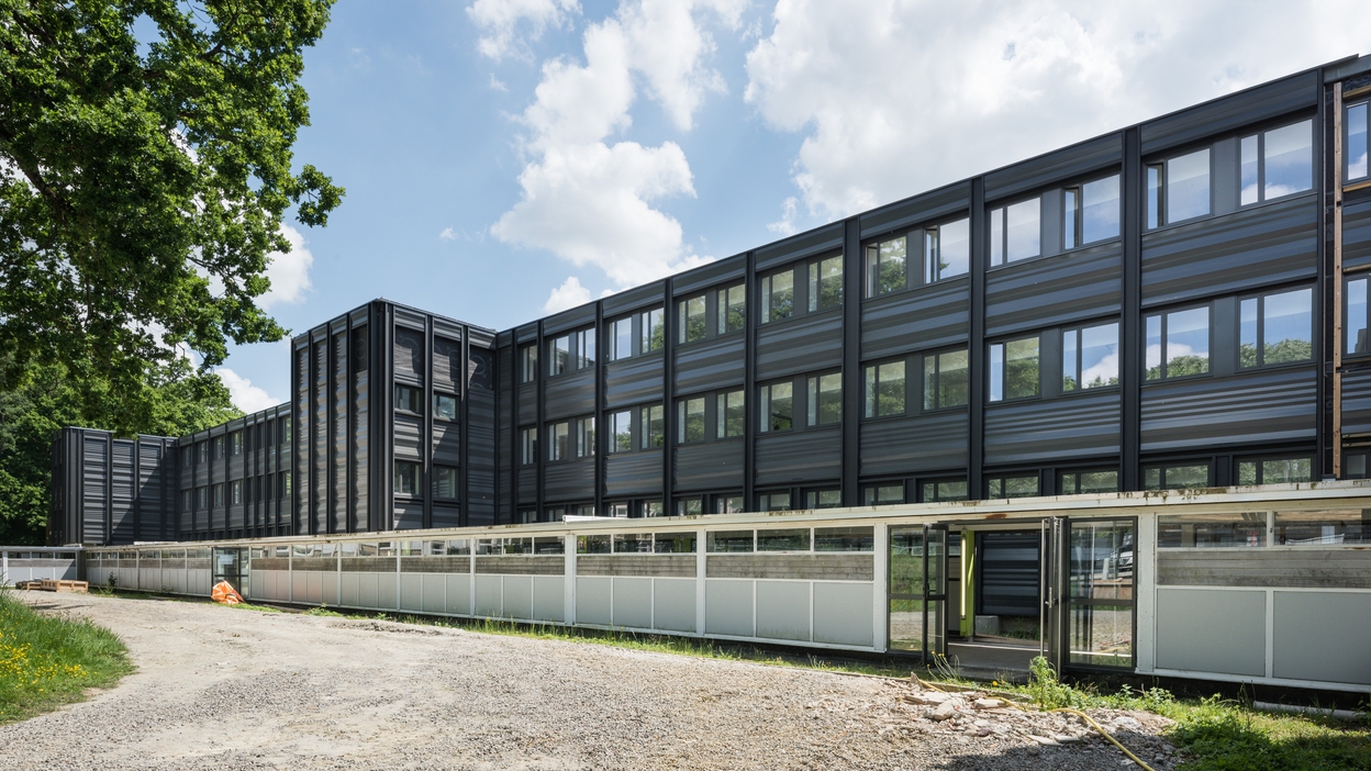 Travaux d'isolation extérieure, bâtiment C, façade nord. Groupe Legendre, architecte : Anthracite 2.0Immatriculation