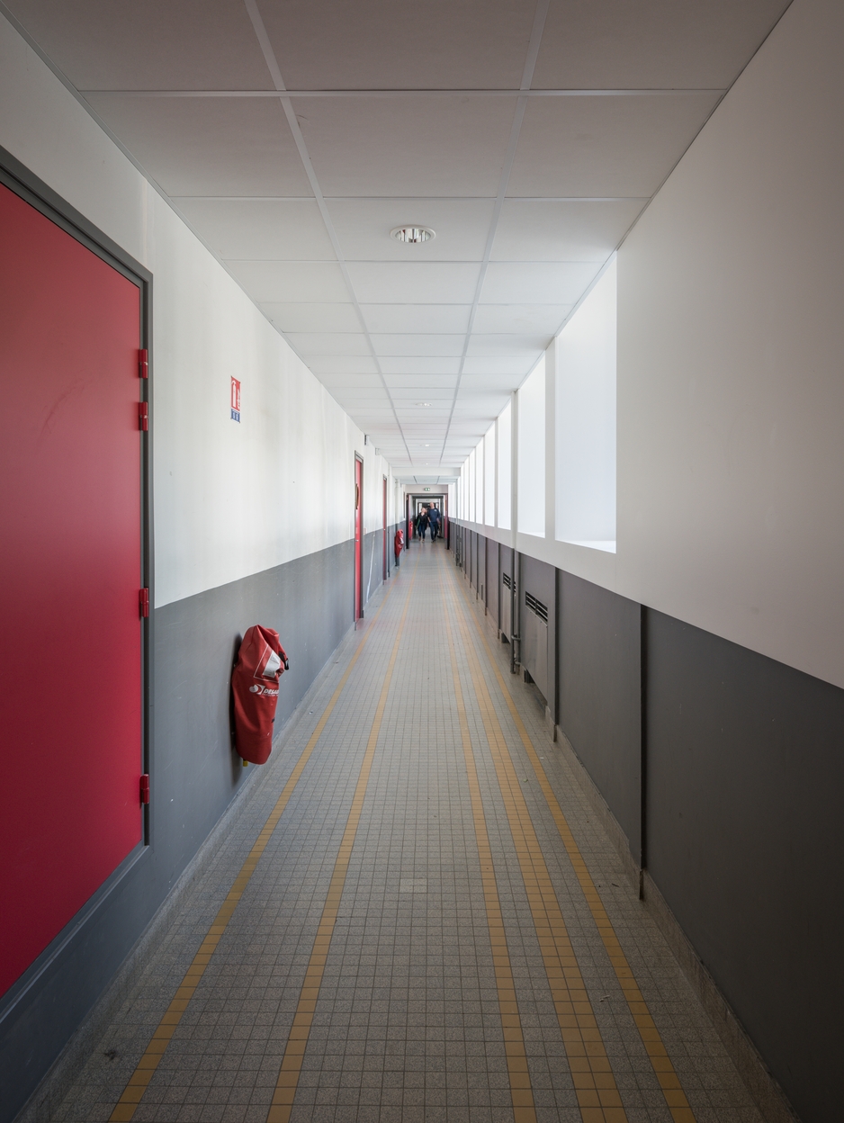 Couloir latéral de desserte des salles de classe d'une barre d'externat.Immatriculation