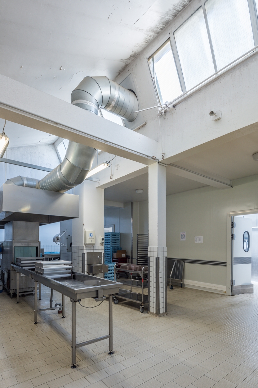 Vue intérieure des cuisines : lave-vaisselle, évacuation des vapeurs et des baies du lanternon.Immatriculation