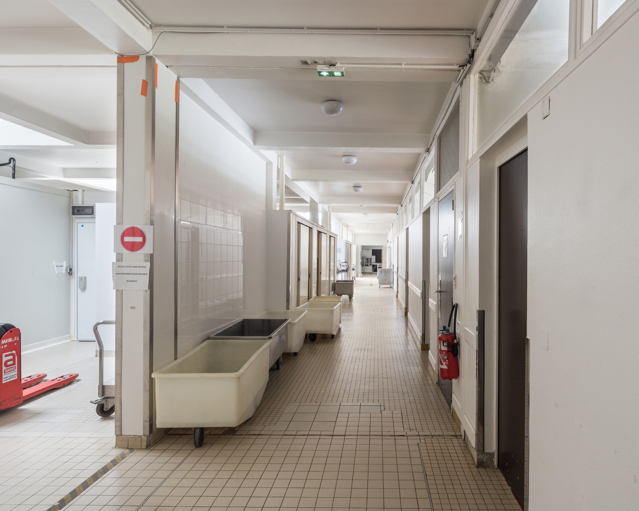 Couloir entre cuisines et réfectoires.Immatriculation