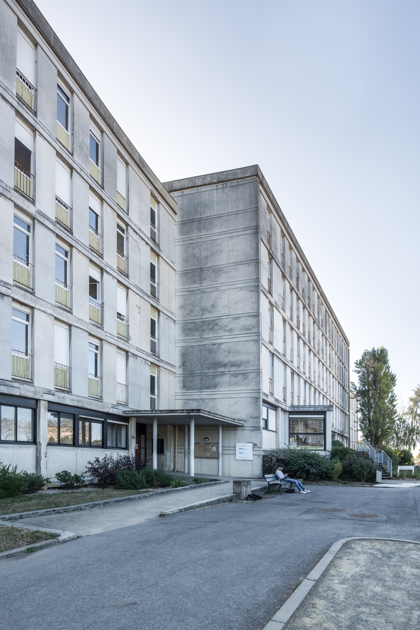 Bâtiment D : Internat de garçons, Infirmerie, logements : façade ouest. Louis Arretche et Jean Lemercier, architectes, 1967Immatriculation