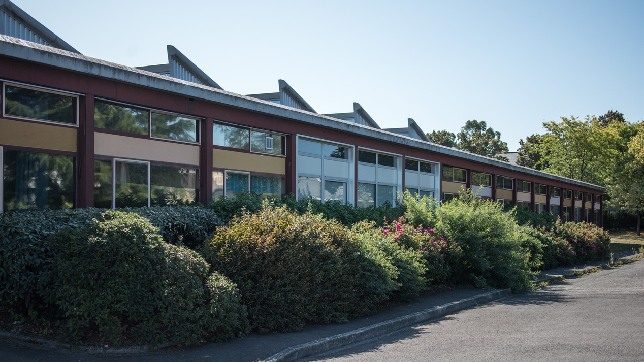 Bâtiment B, ateliers, détail de la façade ouest. Louis Arretche et Jean Monge, architectes, plans 1959.Immatriculation