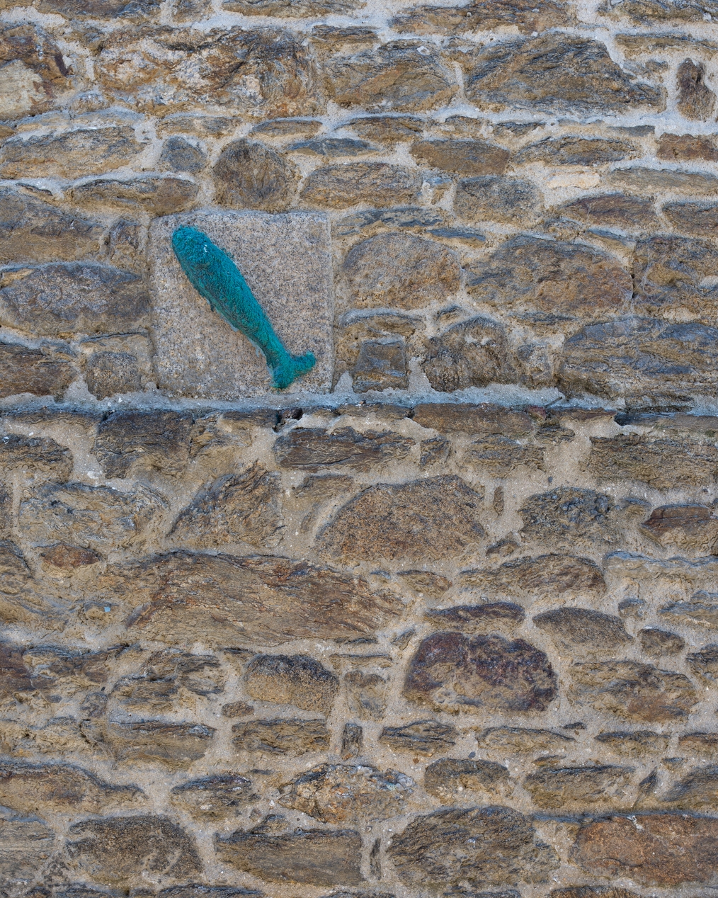 Détail du poisson sculpté sur le chevet, de faceImmatriculation